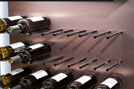 Choosing a wine peg system gives you the most flexibility possible in how you display your wine bottles. You can customize both the number of shelves, the depth, and the configuration of those shelves on a peg by peg basis, allowing you the most flexibility possible in your wine cellar or wine display area.