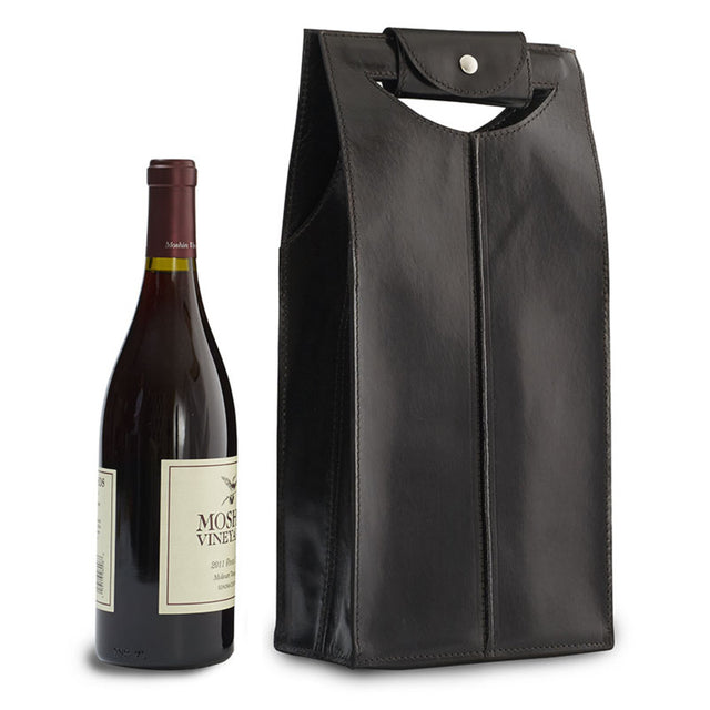 A stylish and portable solution, this luxurious leather wine tote is the perfect size to carry 2 bottles of your favorite wine!